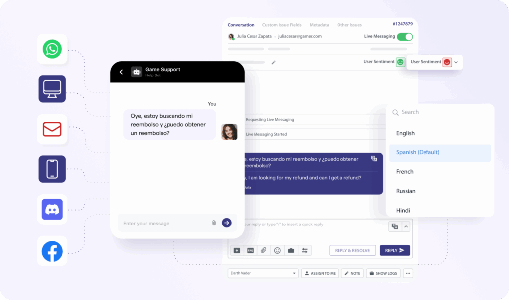 Nearly 48% of gaming support interactions occur in non-English languages, according to Helpshift’s Digital Support Benchmark Report. Helpshift AI and Automation includes Language AI for over 70 languages, delivering native-quality translations instantly. That means a player in Brazil gets the same clarity and empathy as one in Japan, without delays or miscommunication.